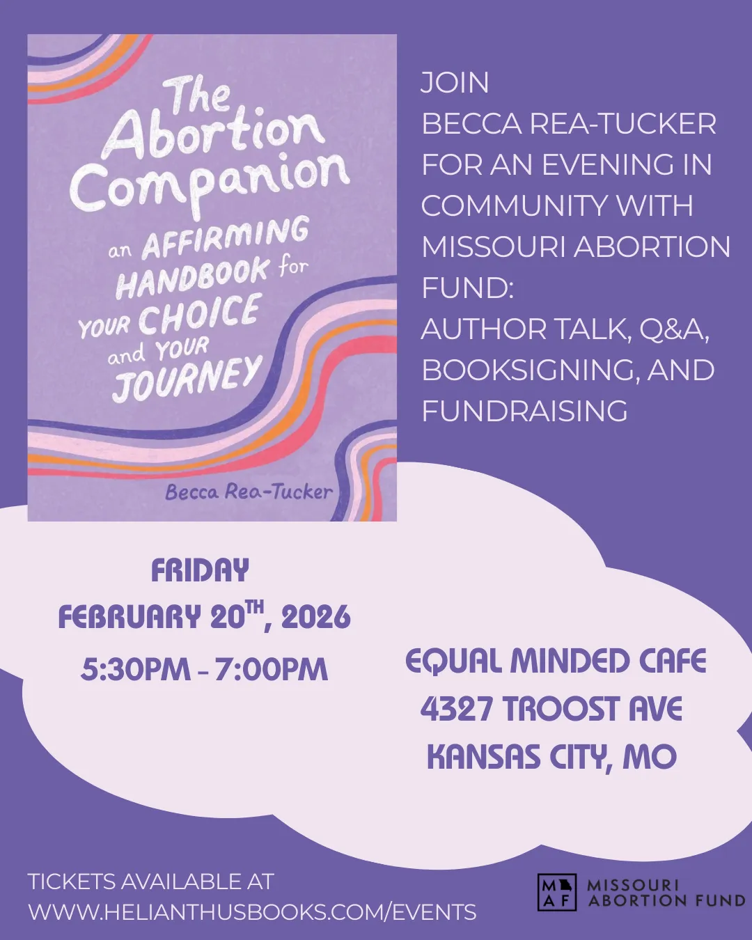 KC: Friday 2/20, 5:30pm at Equal Minded Cafe in partnership with Helianthus Books and MO Abortion Fund